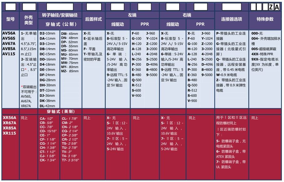 Avtron AV85,AV56 和AV67 SMARTach Ⅱ編碼器,和帶自診斷LED的連接器選項"P"。